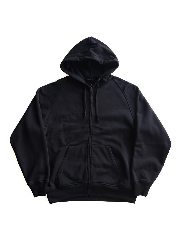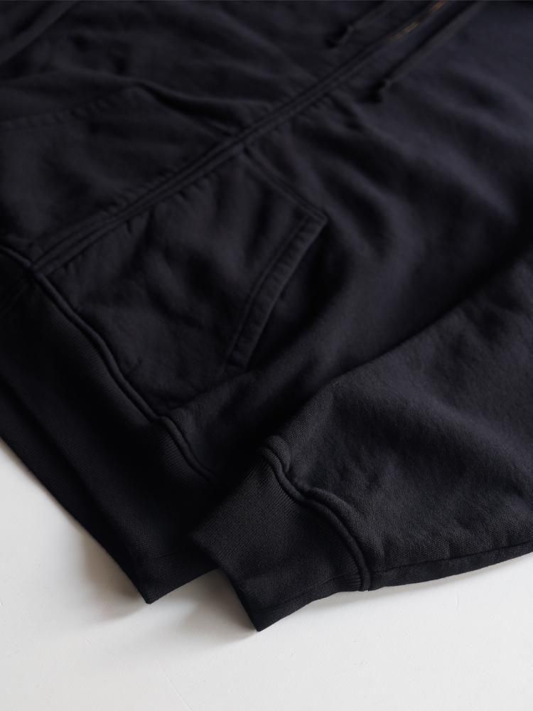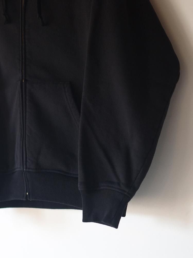 少し硬さのある軽くドライな質感の裏毛素材を使用したジップパーカ。生地は洗いのみの仕上げとなります。