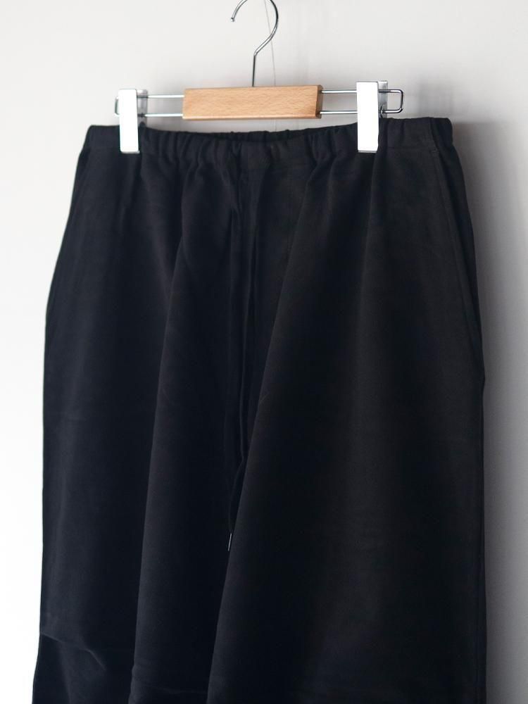 薄手のモールスキン生地を使用したボリュームのあるニータックパンツ。