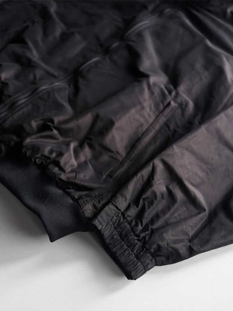 艶感のあるコットンシルク生地を使用したトラックジャケット。深みのあるブラウンカラーの光沢感のある生地となり光の当たり方によっていろんな見え方が楽しめる一枚。保温性のある裏地を使用しており冬の時期も重宝していただけます。