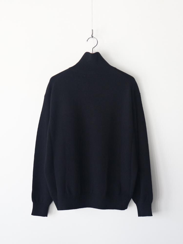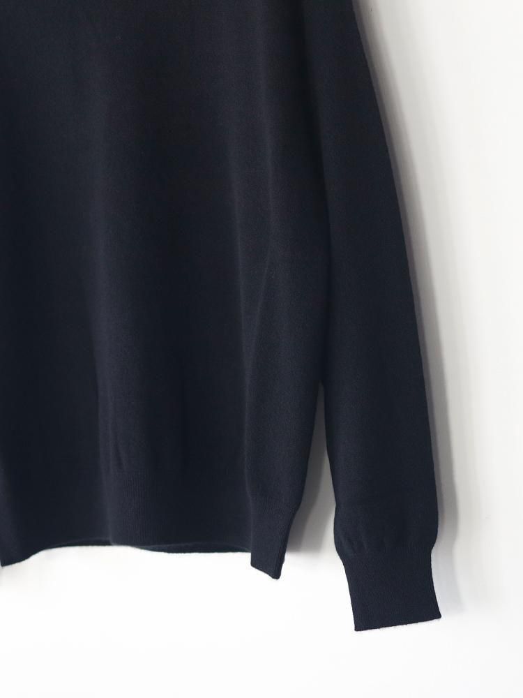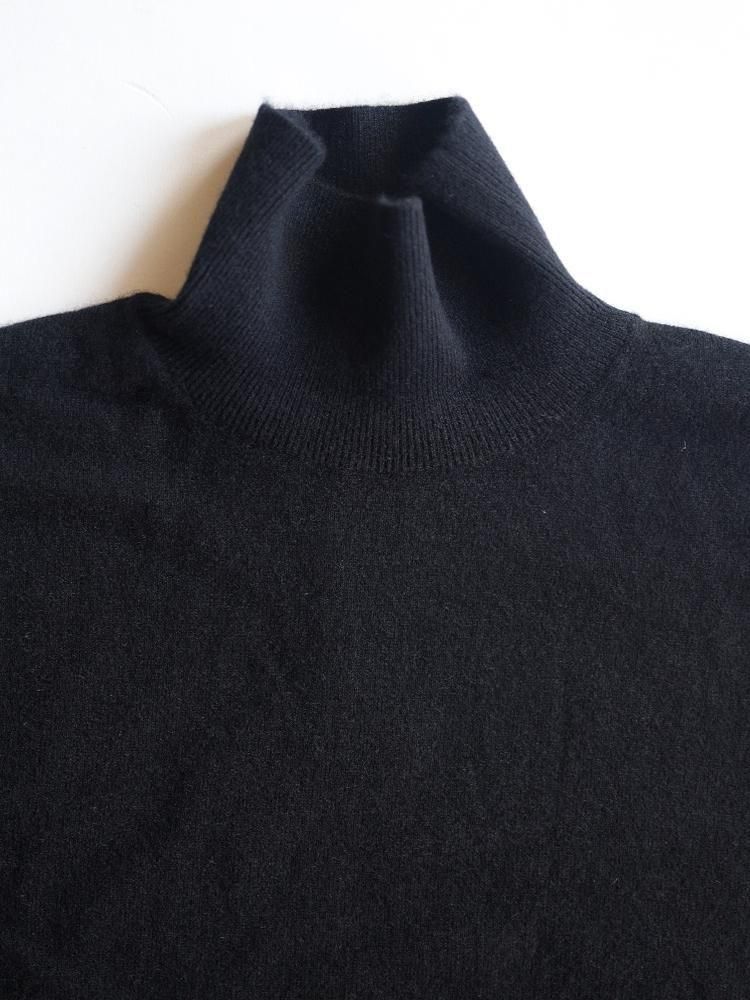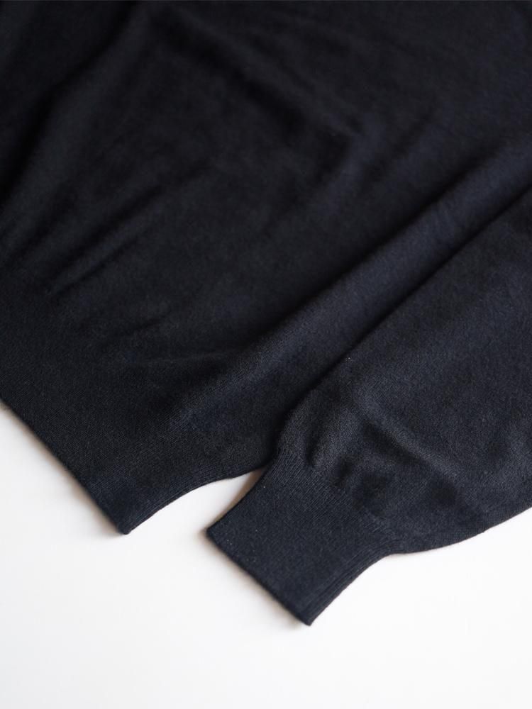 モンゴルの大自然で育まれた希少なベビーカシミヤの毛を100%使用し、極上のニットを編み立てました。この素材は世界でも極めて限られた量しか存在せず、その希少価値は非常に高いです。原料そのものが持つ柔らかさ、ぬめり感、そして美しい光沢感は、加工では決して再現できない自然の特徴。カラーTOP BLACK、風合いを最大限に生かすため、原糸を低温でじっくりと染め、優れた色合いを引き出しております。