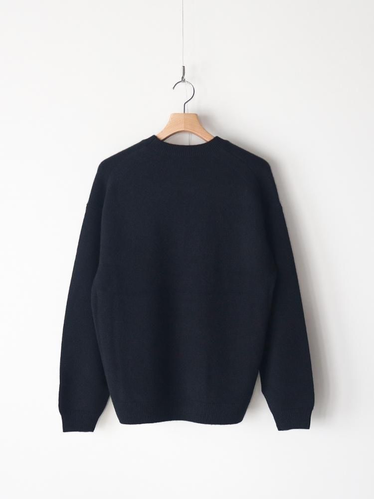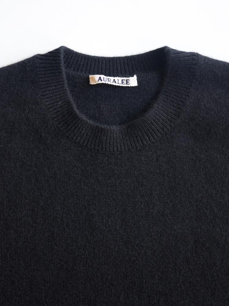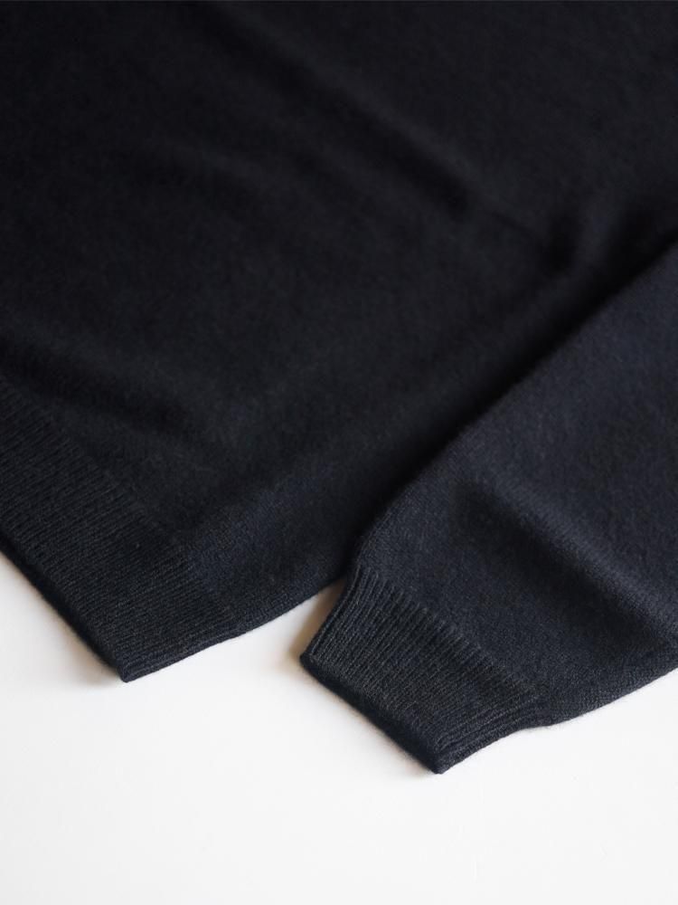 モンゴルの大自然で育まれた希少なベビーカシミヤの毛を100%使用し、極上のニットを編み立てました。この素材は世界でも極めて限られた量しか存在せず、その希少価値は非常に高いです。原料そのものが持つ柔らかさ、ぬめり感、そして美しい光沢感は、加工では決して再現できない自然の特徴。カラーTOP BLACK、風合いを最大限に生かすため、原糸を低温でじっくりと染め、優れた色合いを引き出しております。